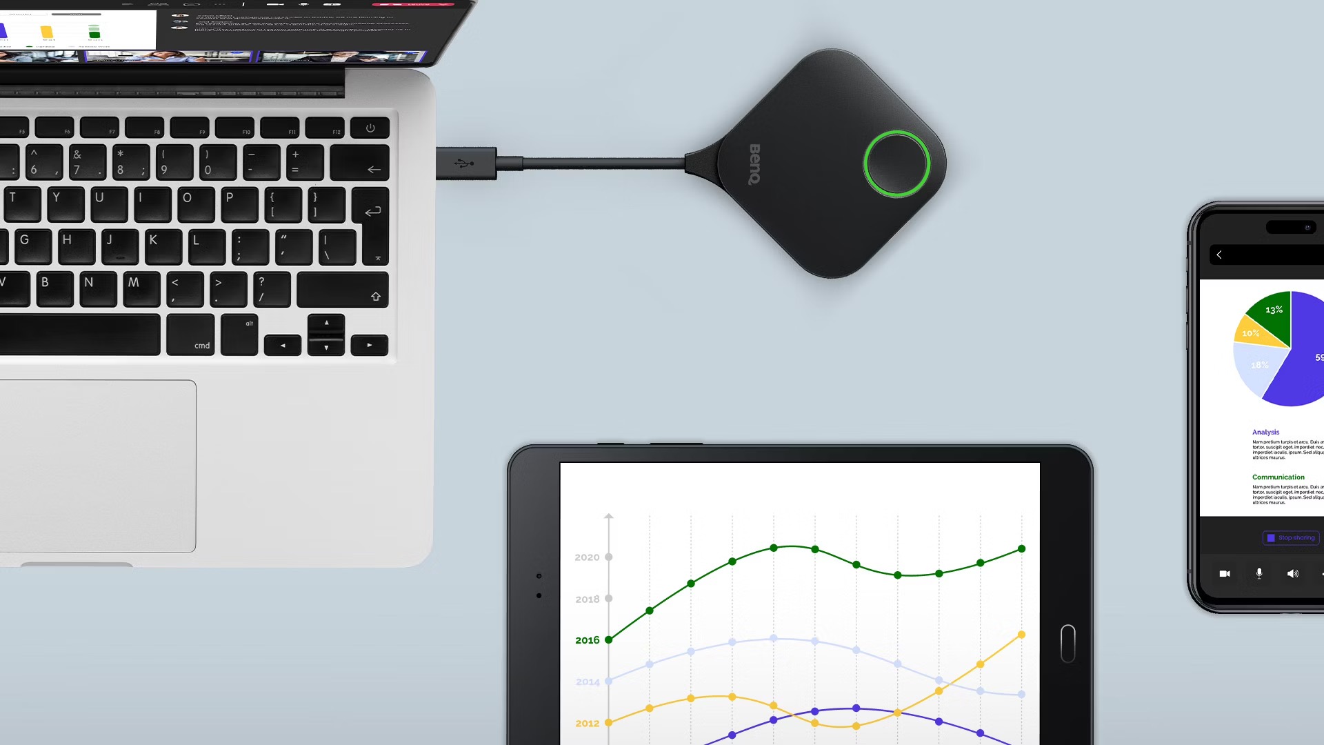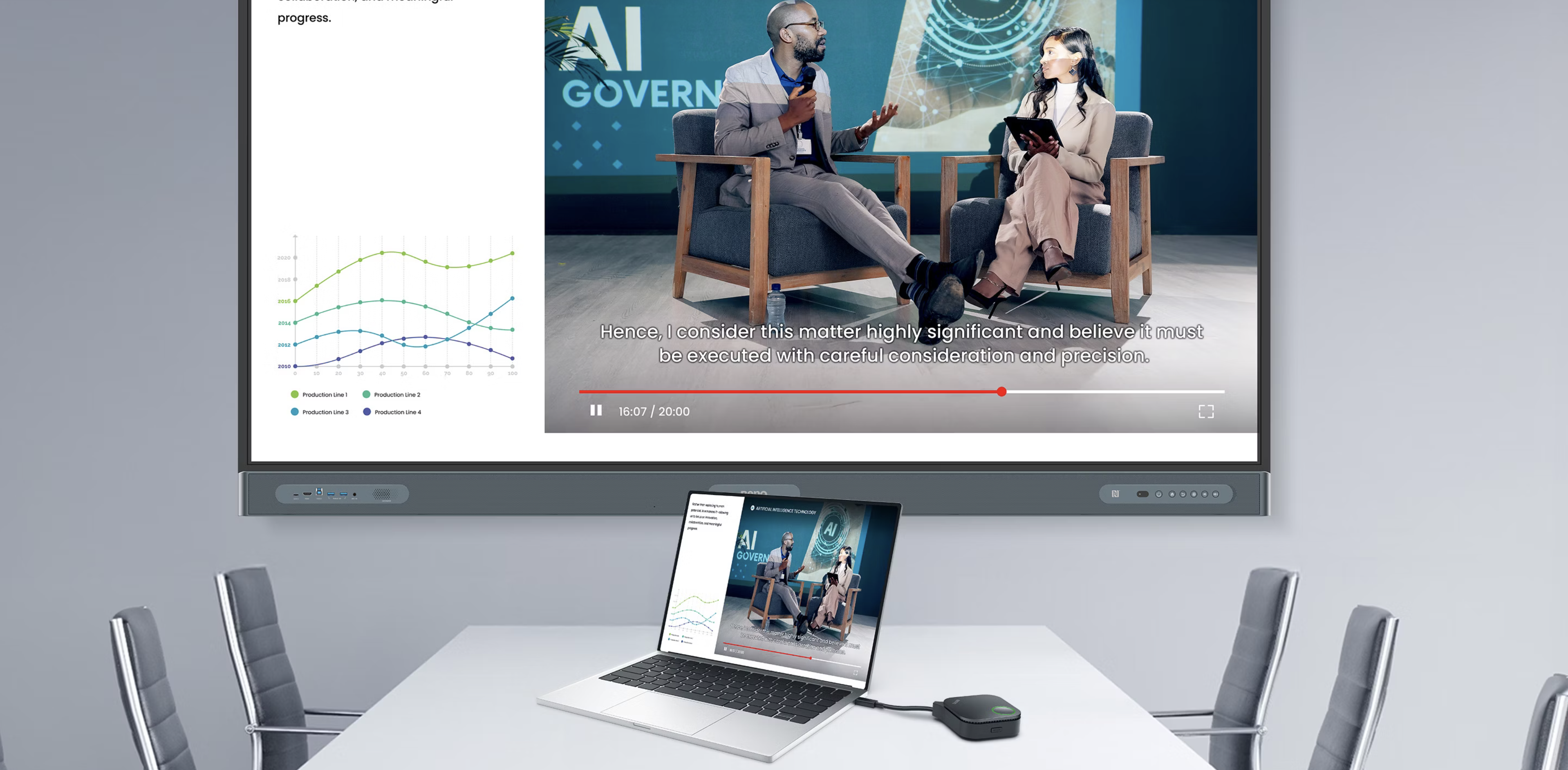 Niepotrzebne oprogramowanie ani aplikacje - po prostu podłącz i natychmiast udostępniaj treść podczas spotkania.