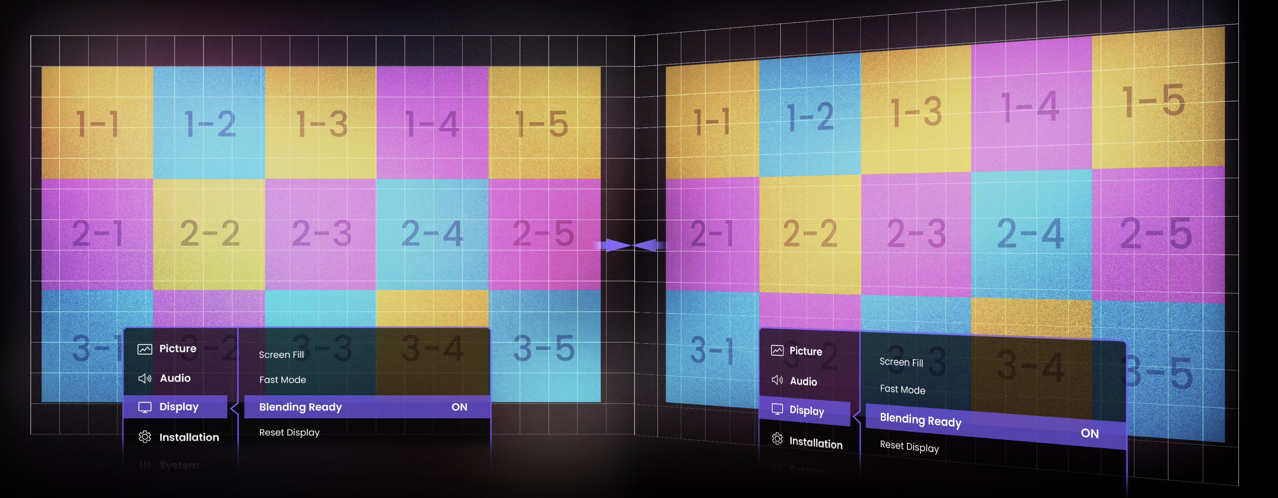 Jedno kliknięcie do wstępnych ustawień blendingu wielu projektorów, minimalizuje konfigurację