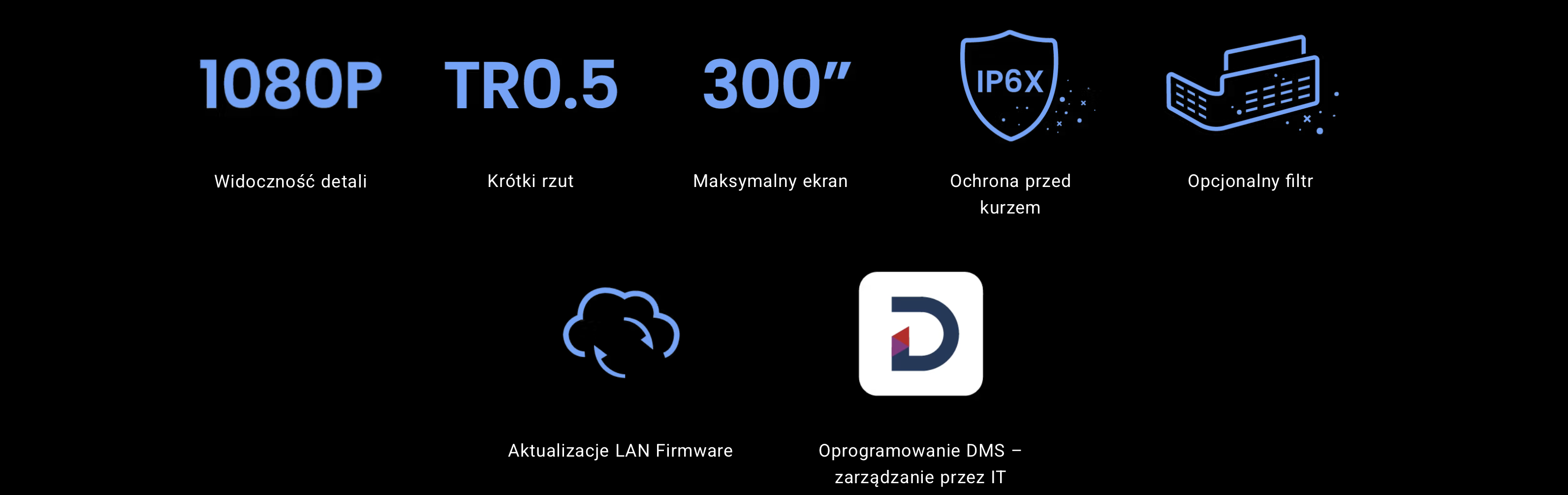 Zapewnia większą ochronę w zapylonych przestrzeniach i wydłuża żywotność projektora.