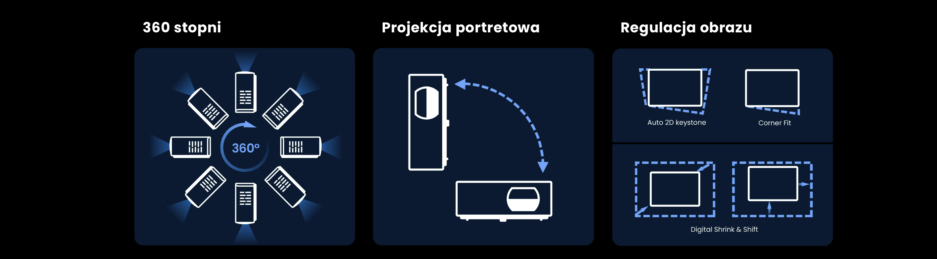 360° i projekcja portretowa dla pełnej swobody instalacji