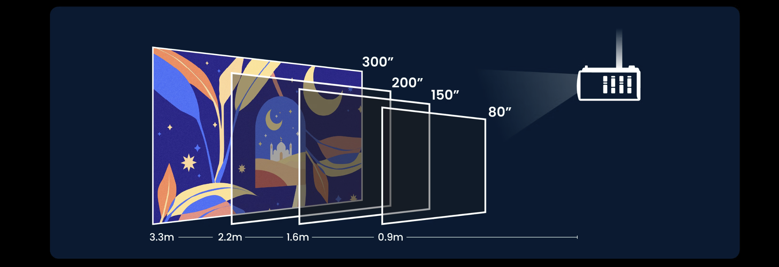 Współczynnik krótkiego rzutu 0,5 pozwala uzyskać duży obraz z krótkiej odległości w ograniczonych przestrzeniach.