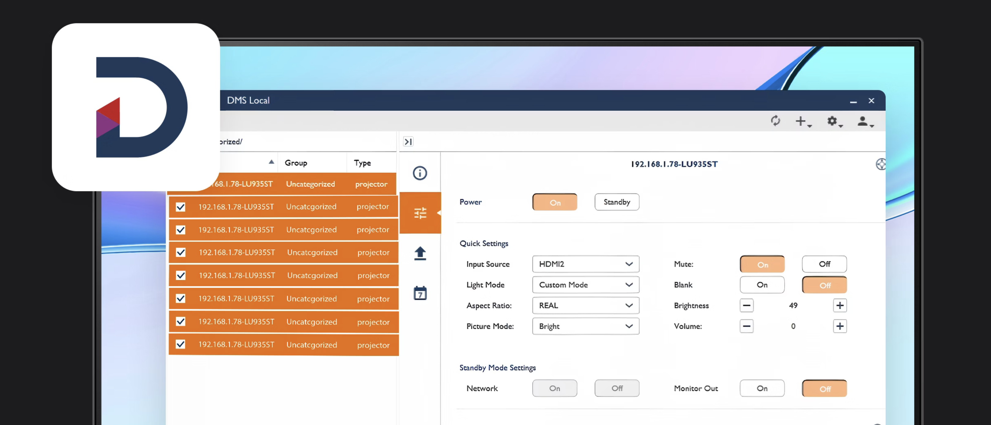 Łatwo monitoruj status projektora i diagnozuj problemy zdalnie, eliminując konieczność częstych wizyt serwisowych.