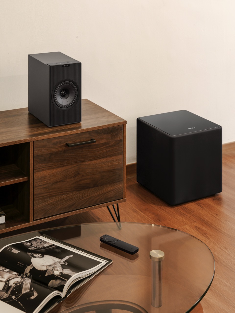 Subwoofer – wyjście sub out + opcjonalny moduł bezprzewodowy KEF KW1