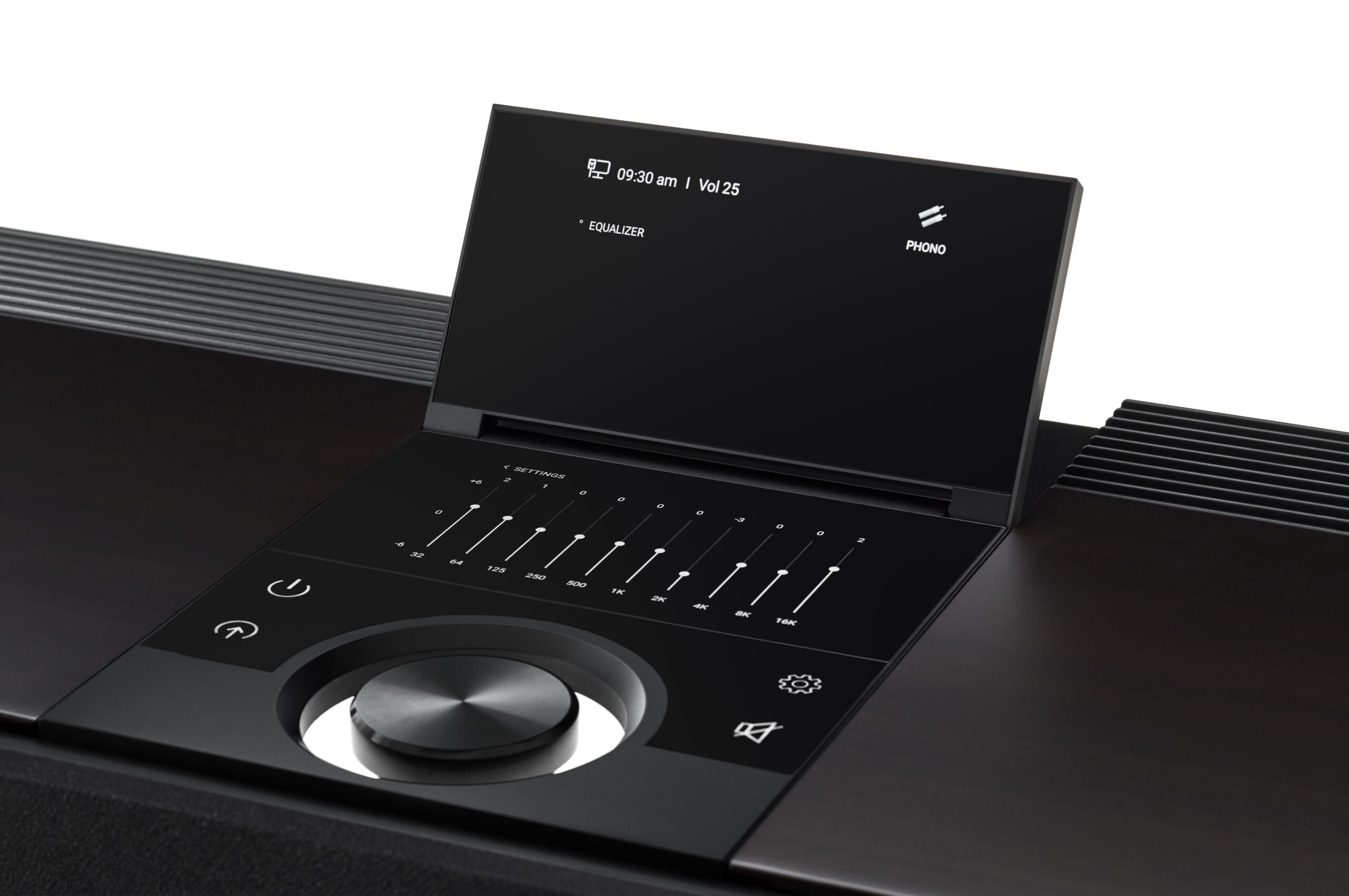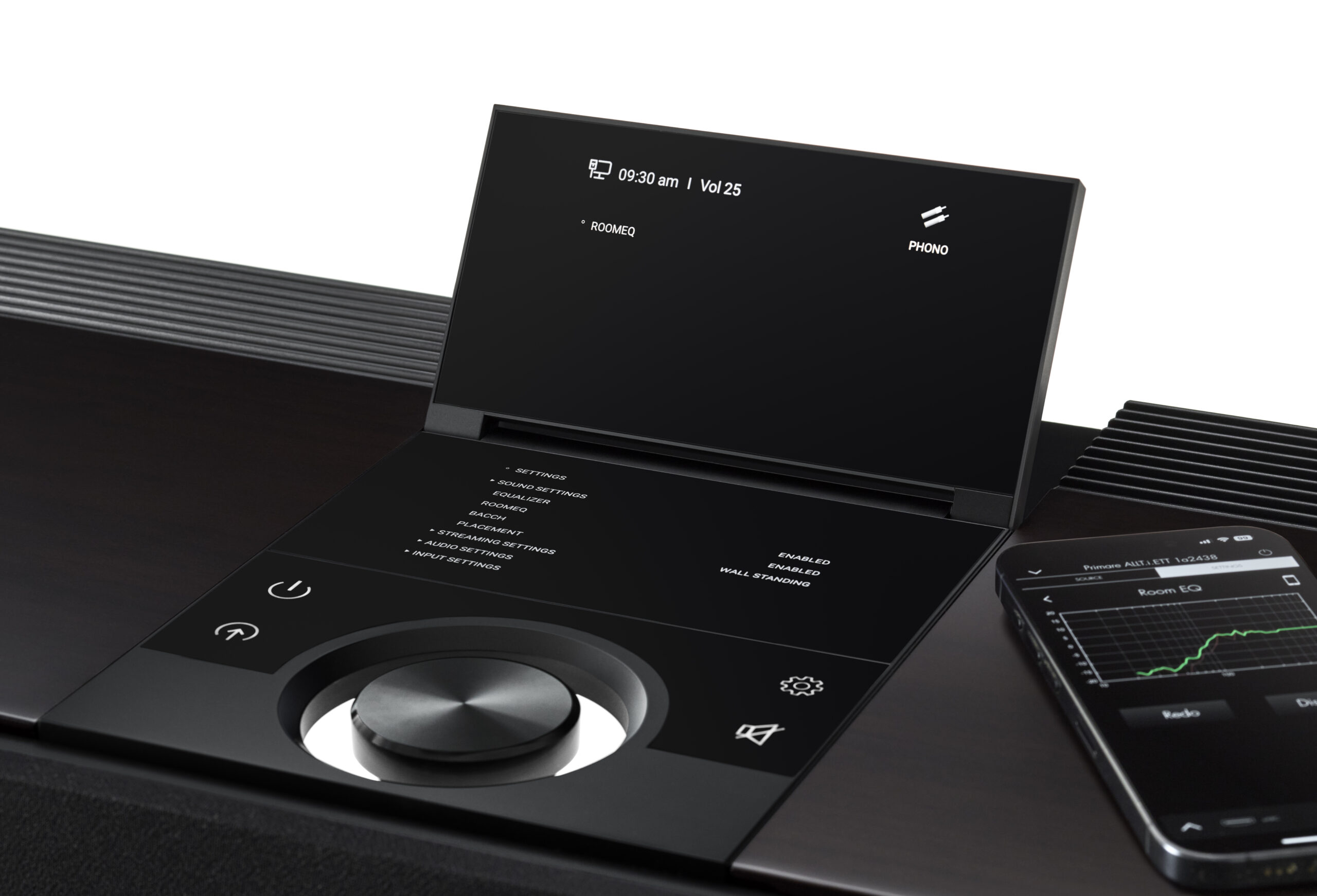 Zintegrowany system cyfrowego przetwarzania dźwięku (DSP) w pełni wykorzystuje możliwości potężnego układu głośników, dopasowując brzmienie do akustyki pomieszczenia i indywidualnych preferencji użytkownika.