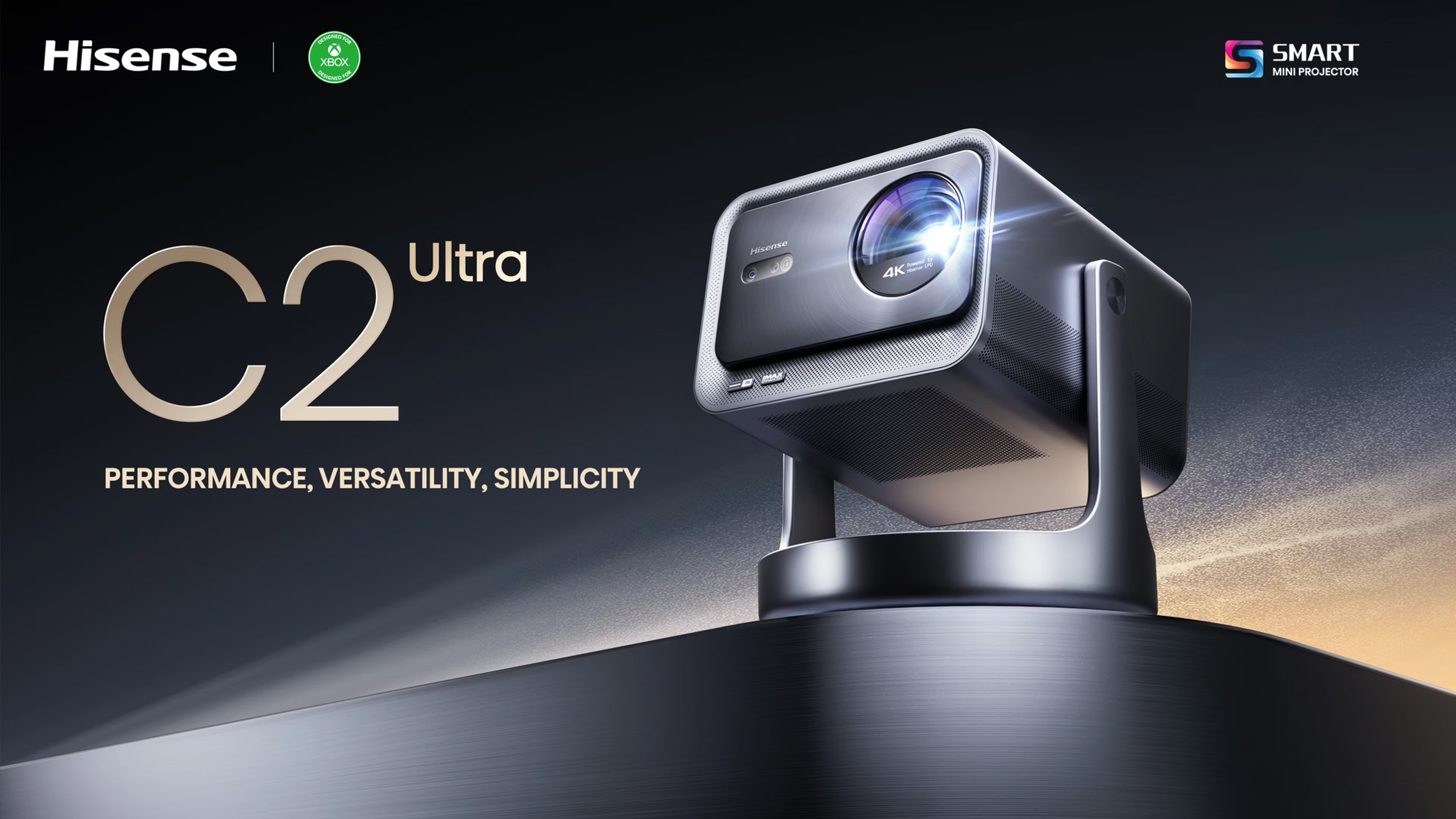 Hisense C2 Ultra Wszechstronny projektor 4K ultrakrótkiego rzutu z łącznością bezprzewodową.