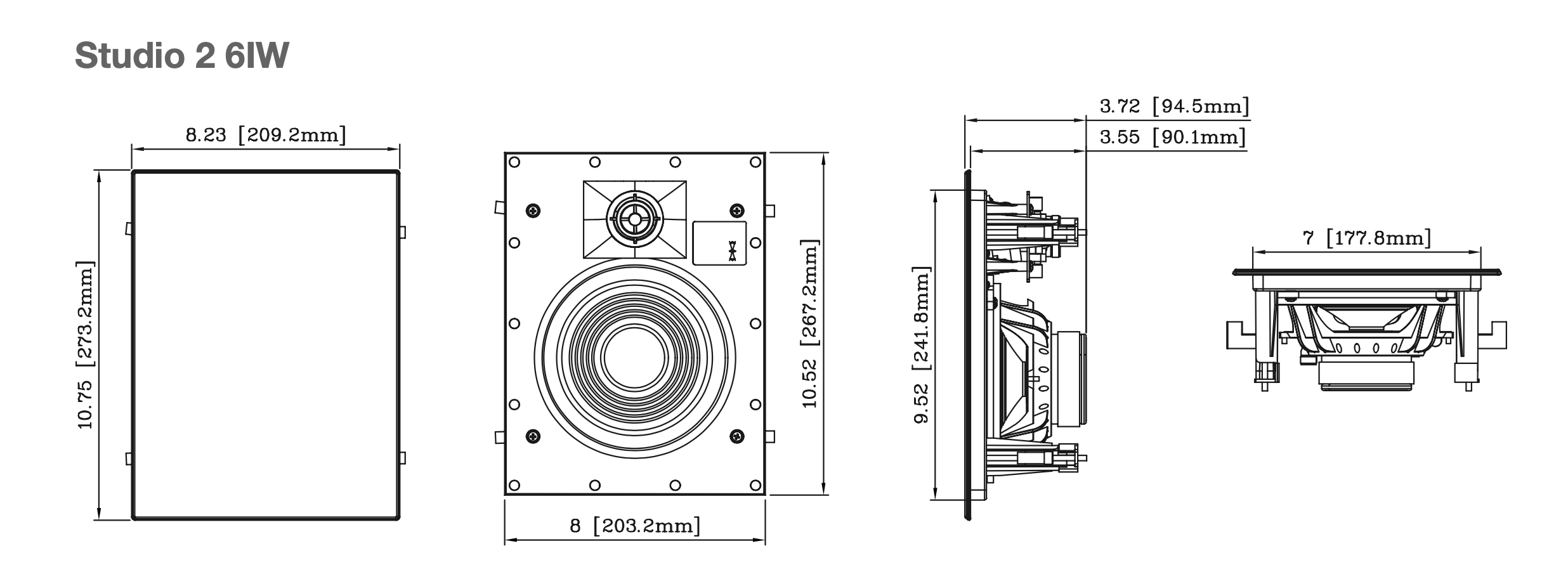 Seria JBL Studio 2 Architectural oferuje niemal niewidoczny, malowany, bezramkowy profil zero-bezel, dzięki czemu głośniki wtapiają się w otoczenie. Solidna konstrukcja wykorzystuje uchwyt XL-2, przystosowany do montażu w ścianach i sufitach o grubości do 2 cali.