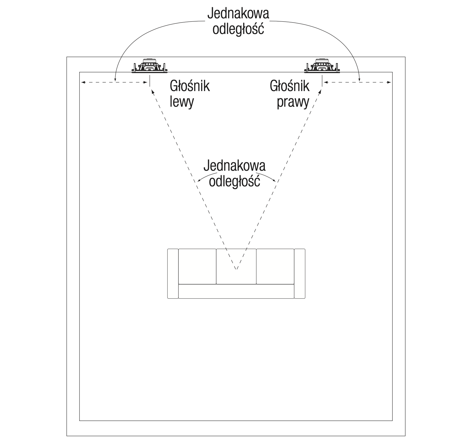 Lewy i prawy głośnik powinny znajdować się w tej samej odległości od głównego miejsca odsłuchu.