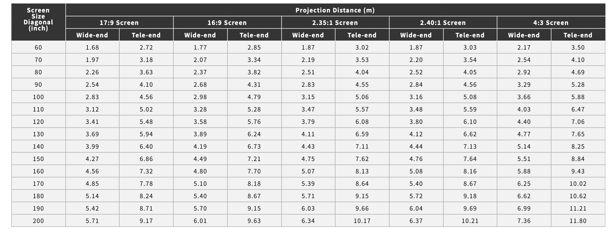 Projektor wyposażony jest w 80 mm obiektyw 4K z 1,6-krotnym zoomem i motorycznym ustawianiem ostrości. Zakres przesunięcia obiektywu to aż ±70% w pionie i ±28% w poziomie, co zapewnia dużą elastyczność instalacyjną i doskonałą jakość obrazu w każdym narożniku ekranu.