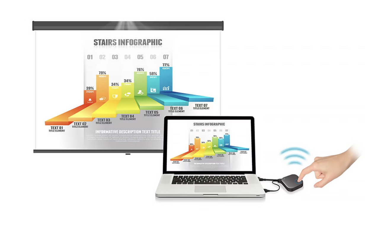* Wymagania dotyczące kompatybilności: Porty USB/HDMI lub USB-C w laptopie źródłowym i wejście HDMI w urządzeniu wyświetlającym.