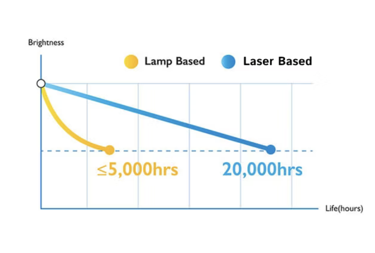 Projektory laserowe BenQ BlueCore gwarantują 20,000 godzin doskonałej jakości i wydajności obrazu. Źródło światła laserowego jest odporne na zanik kolorów w miarę upływu czasu, dzięki czemu projektory laserowe BenQ są idealne do prezentacji korporacyjnych, które wymagają wysokiej wydajności kolorów i niezawodnej jakości projekcji.