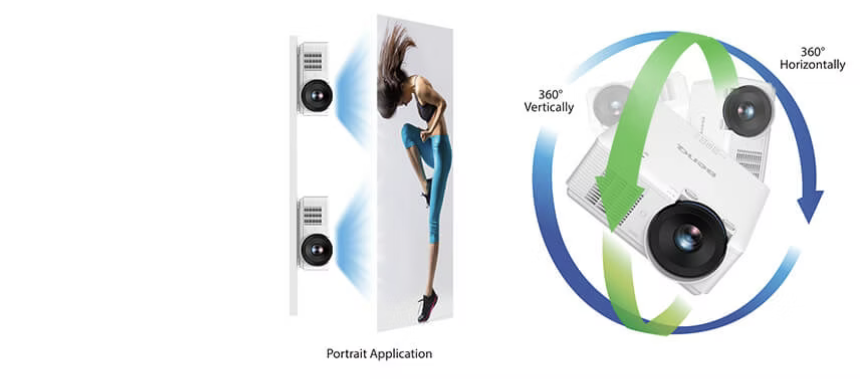 BenQ LU785 wyposażony jest w technologię BlueCore, która gwarantuje niezawodną projekcję i może być pochylany o 360° w pionie i poziomie, umożliwiając projekcję na suficie, ścianach, podłodze, lub pod kątem, aby spełnić wszelkie wymagania projekcji.