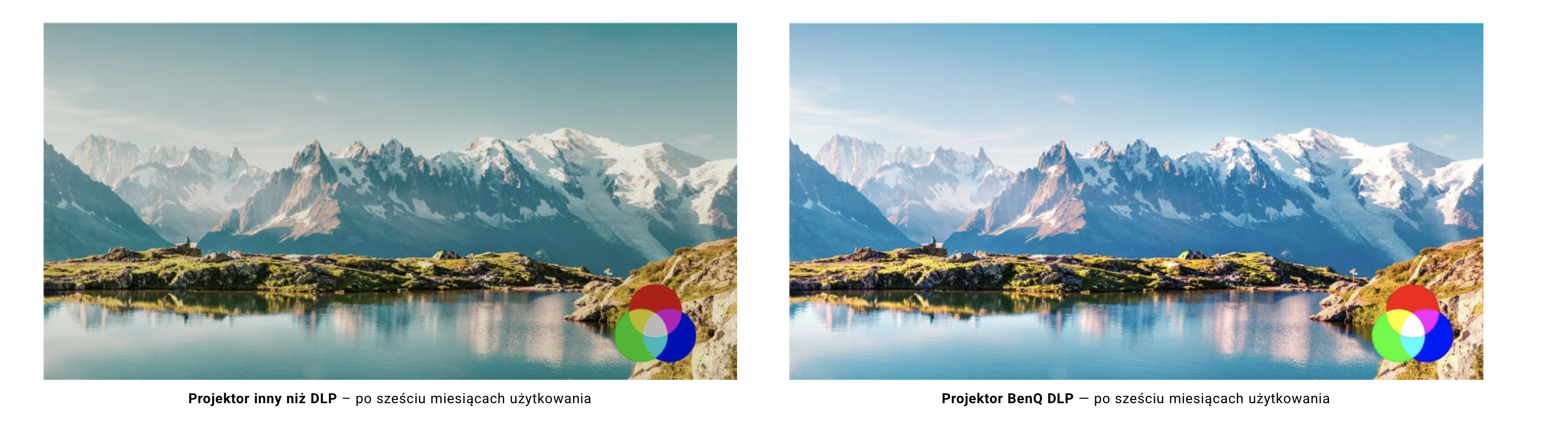 Po sześciu miesiącach użytkowania projektor BenQ DLP zachowuje wysoką jakość obrazu, żywe kolory oraz niezawodność dzięki technologii DLP.