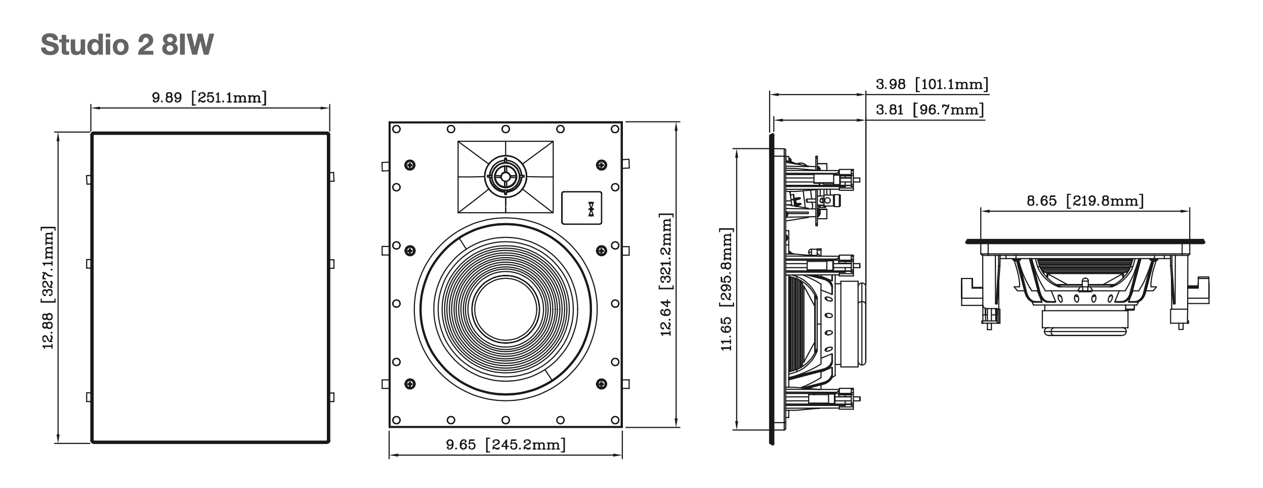 Seria JBL Studio 2 Architectural oferuje niemal niewidoczny, malowany, bezramkowy profil zero-bezel, dzięki czemu głośniki wtapiają się w otoczenie. Solidna konstrukcja wykorzystuje uchwyt XL-2, przystosowany do montażu w ścianach i sufitach o grubości do 2 cali.