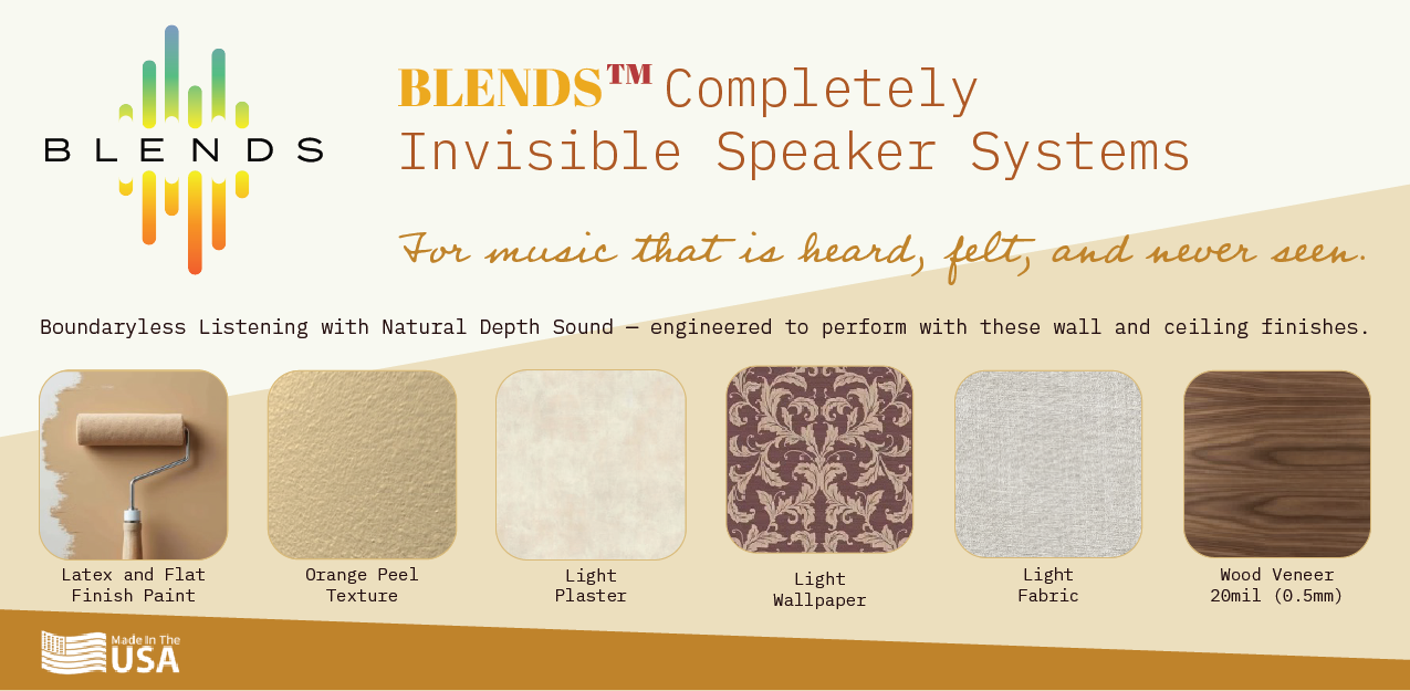To możliwe dzięki nowej serii niewidocznych głośników BLENDS – unikalnemu rozwiązaniu audio przeznaczonemu do instalacji, w których estetyka wnętrza nie może być w żaden sposób naruszona.