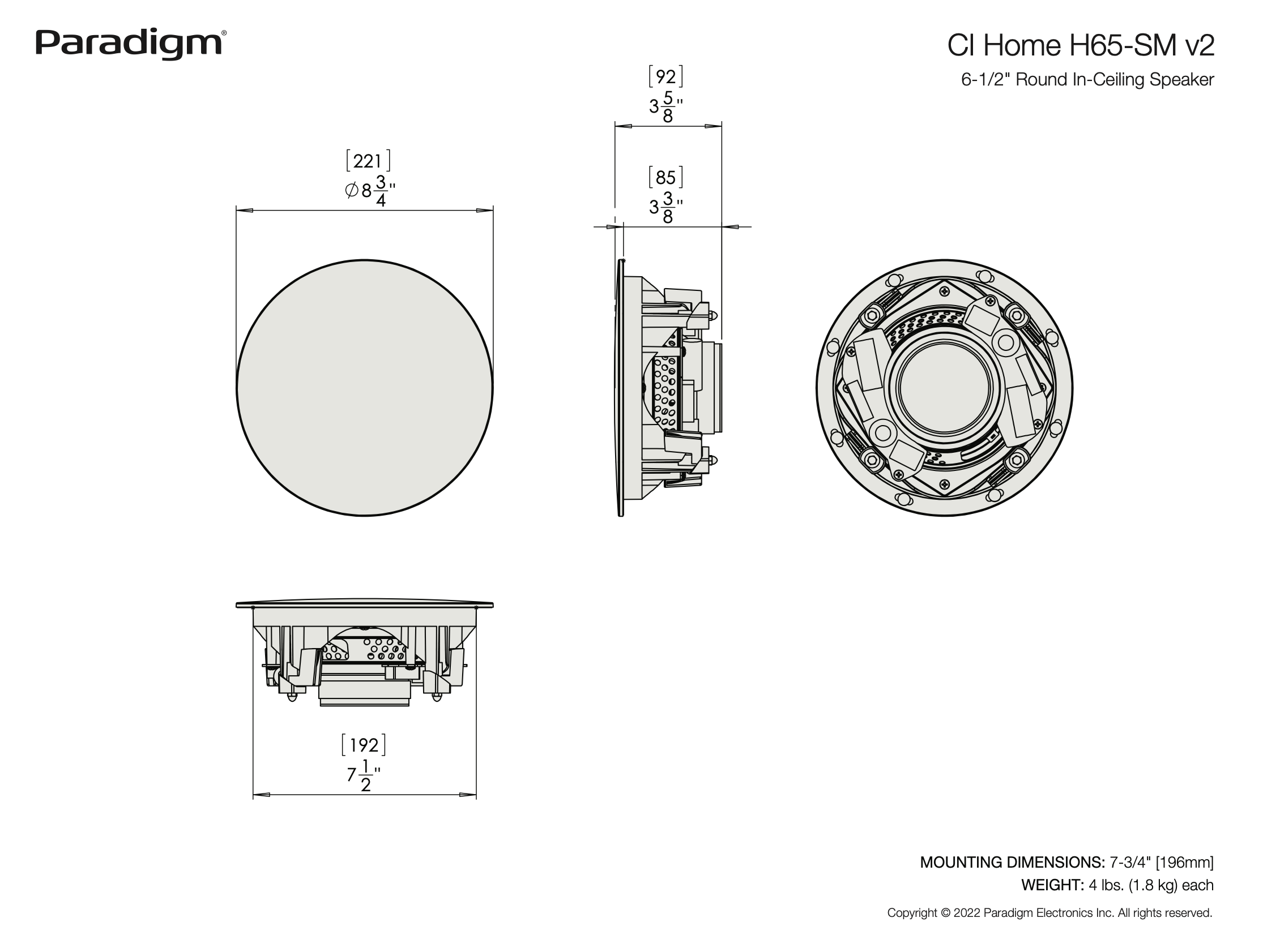 Konstrukcja: 3-przetwornikowy, 2-drożny głośnik sufitowy, system Dual-Directional Soundfield™, obudowa i klamry montażowe z ABS