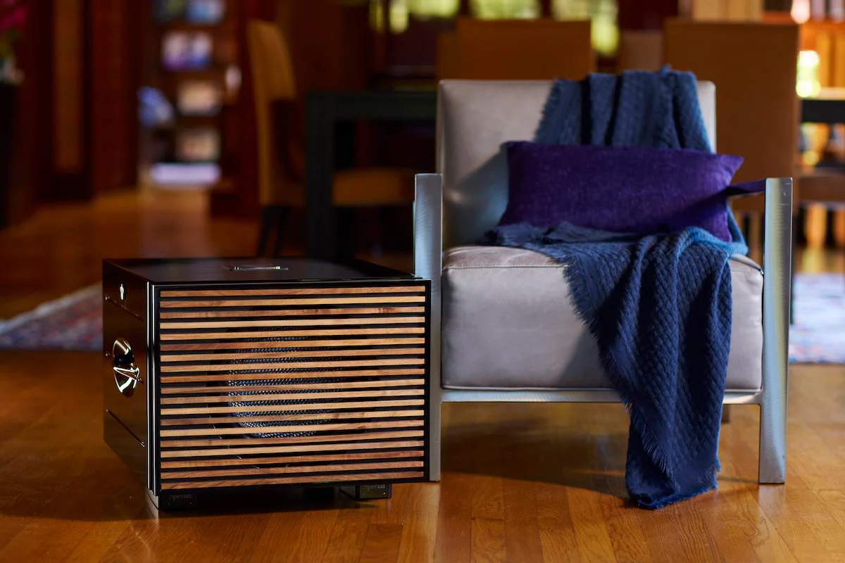Każdy egzemplarz wyposażono w maskownicę z naturalnego drewna klasy premium, która dodaje ciepła wizualnego i poprawia przepływ powietrza, zwiększając tym samym dynamikę brzmienia.