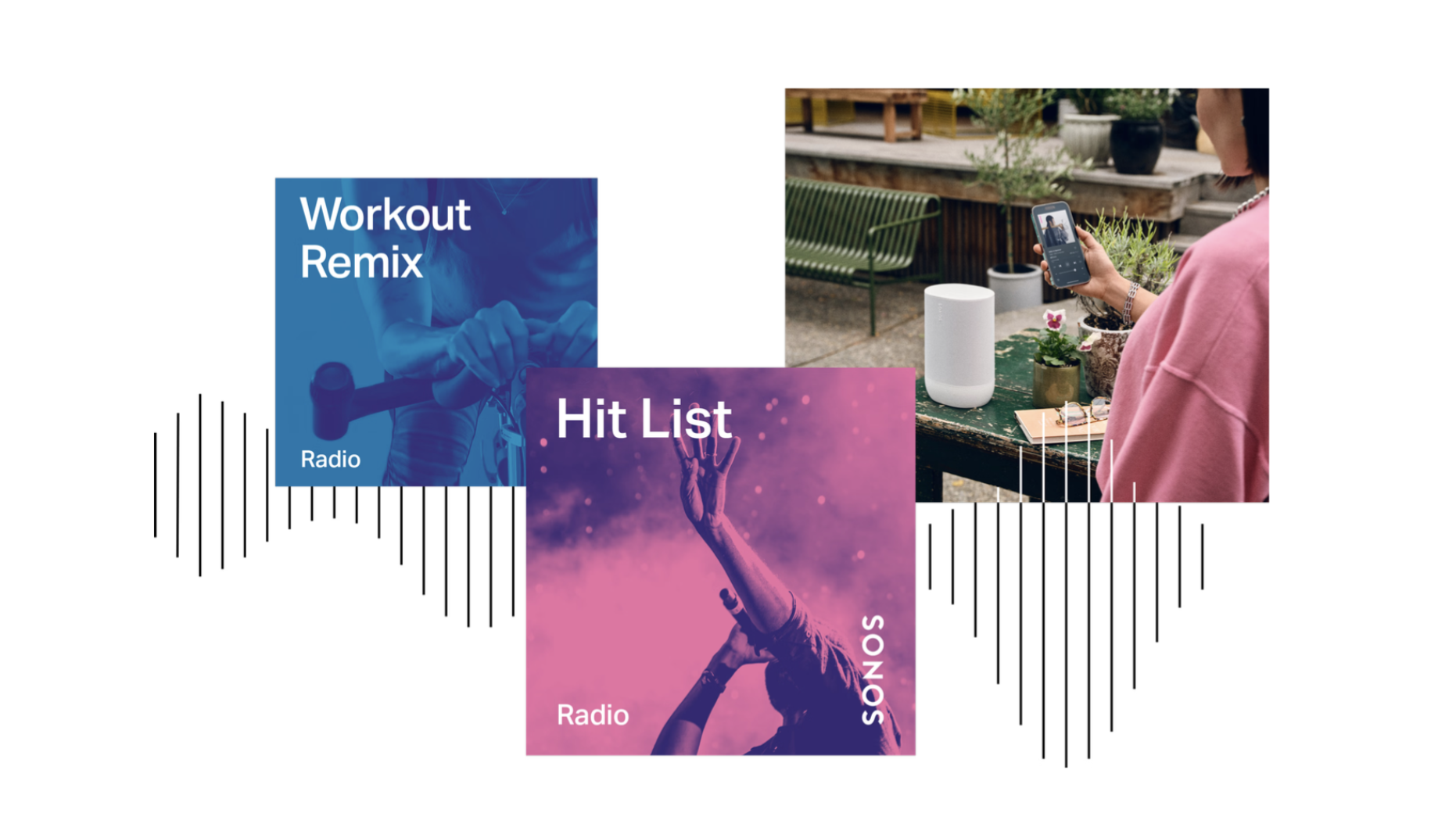 Przesyłaj strumieniowo wyselekcjonowaną muzykę i tysiące stacji radiowych na żywo z Sonos Radio. Nie musisz pobierać dodatkowych aplikacji ani zakładać nowego konta.