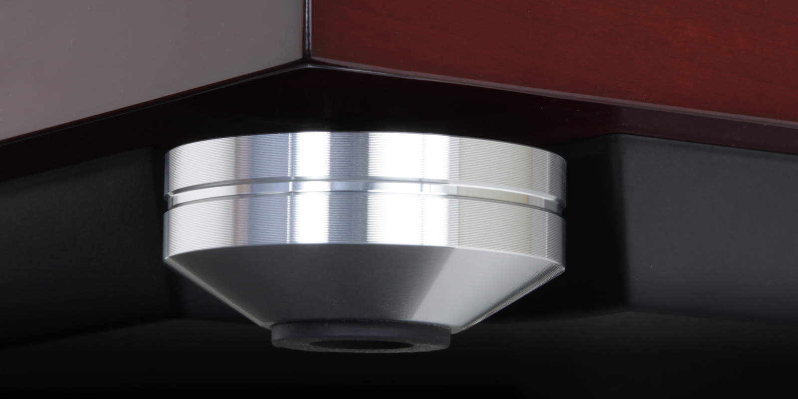 Izolujące nóżki składają się z obrobionej maszynowo aluminiowej obudowy, zwieńczonej gumową poduszką, która jest przymocowana do cokołu z MDF o dużej gęstości. Dzięki doskonałej charakterystyce pochłaniania wstrząsów, TN-3B jest bardzo odporny na sprzężenie akustyczne.