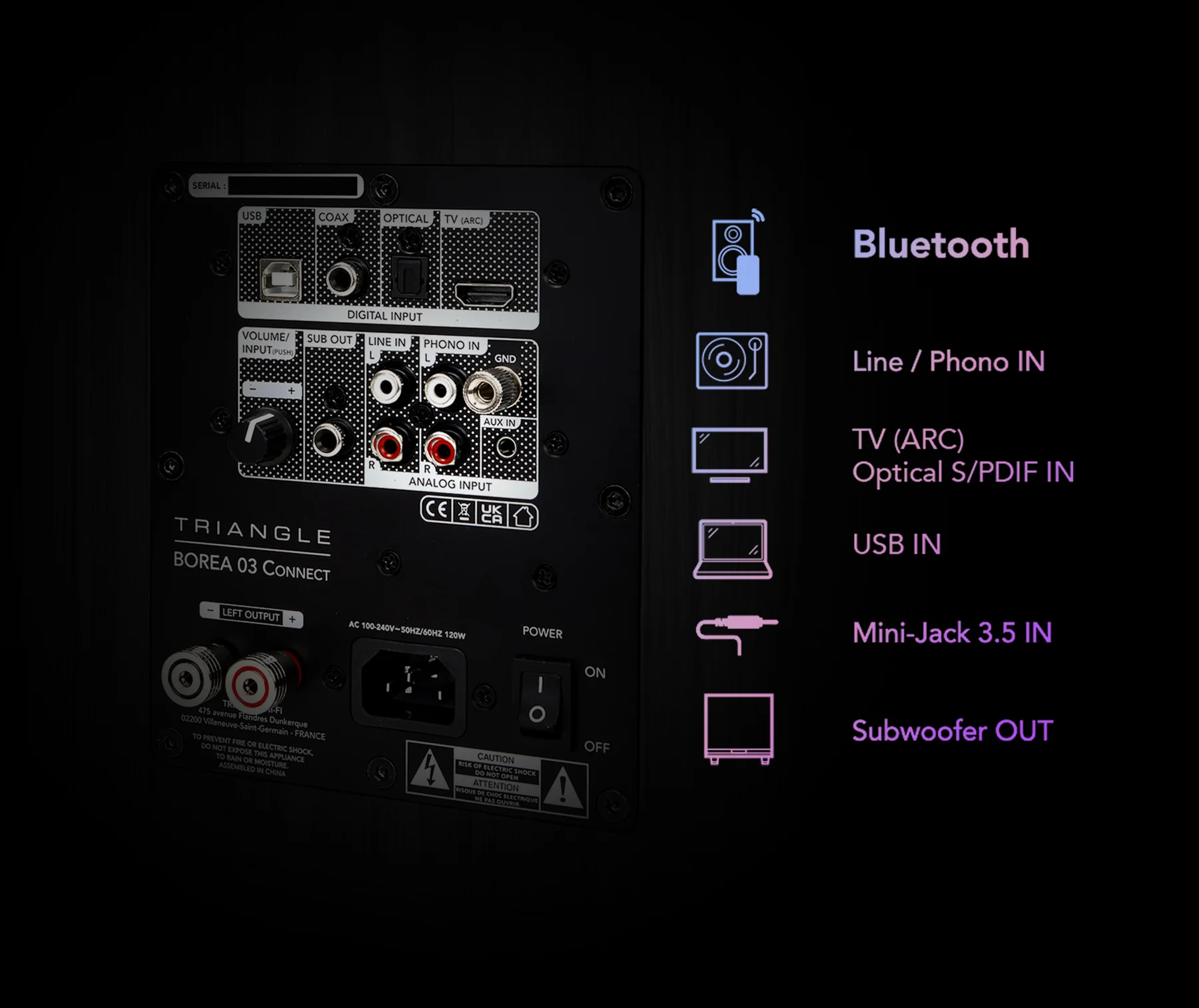Aktywne głośniki BR03 CONNECT tworzą kompletny, mocny i wszechstronny system stereo. Wyposażone w jeden z najbardziej rozbudowanych wzmacniaczy w swojej klasie, łączą kunszt akustyczny TRIANGLE z nowoczesnymi technologiami. To idealny wybór do pomieszczeń o powierzchni 15–35 m².